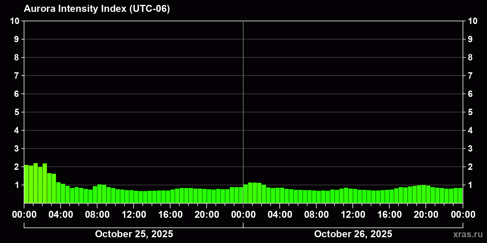 Changes in the auroral intensity index from 2025-10-25 to 2025-10-26 local time