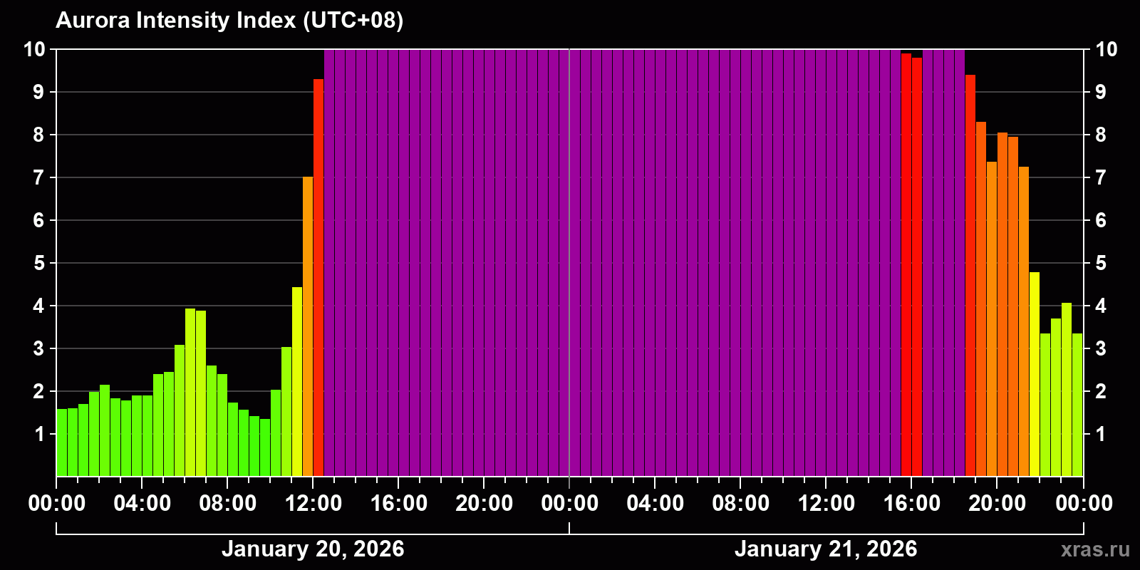 Changes in the auroral intensity index from 2026-01-20 to 2026-01-21 local time
