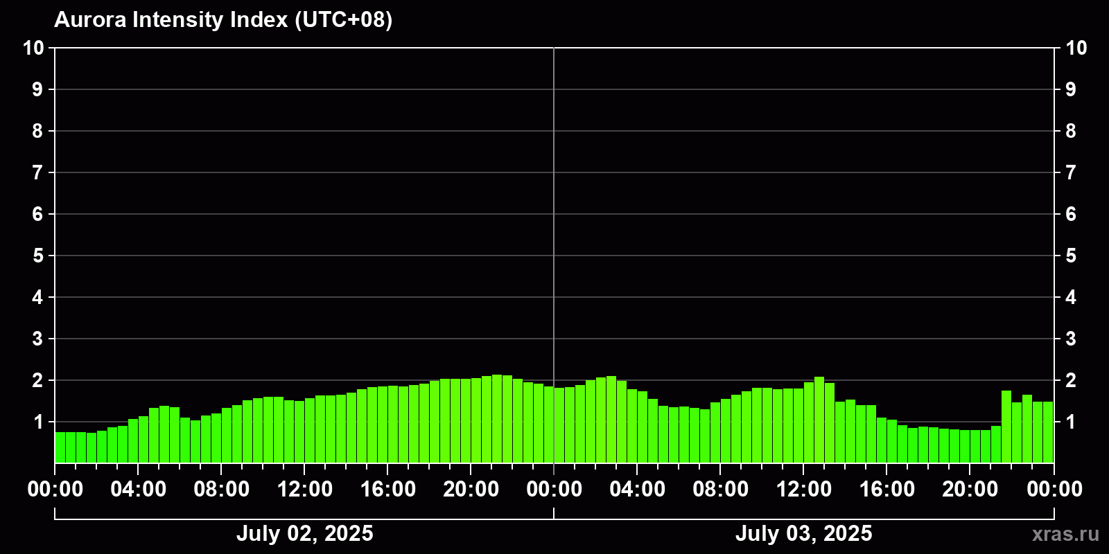 Changes in the auroral intensity index from 2025-07-02 to 2025-07-03 local time