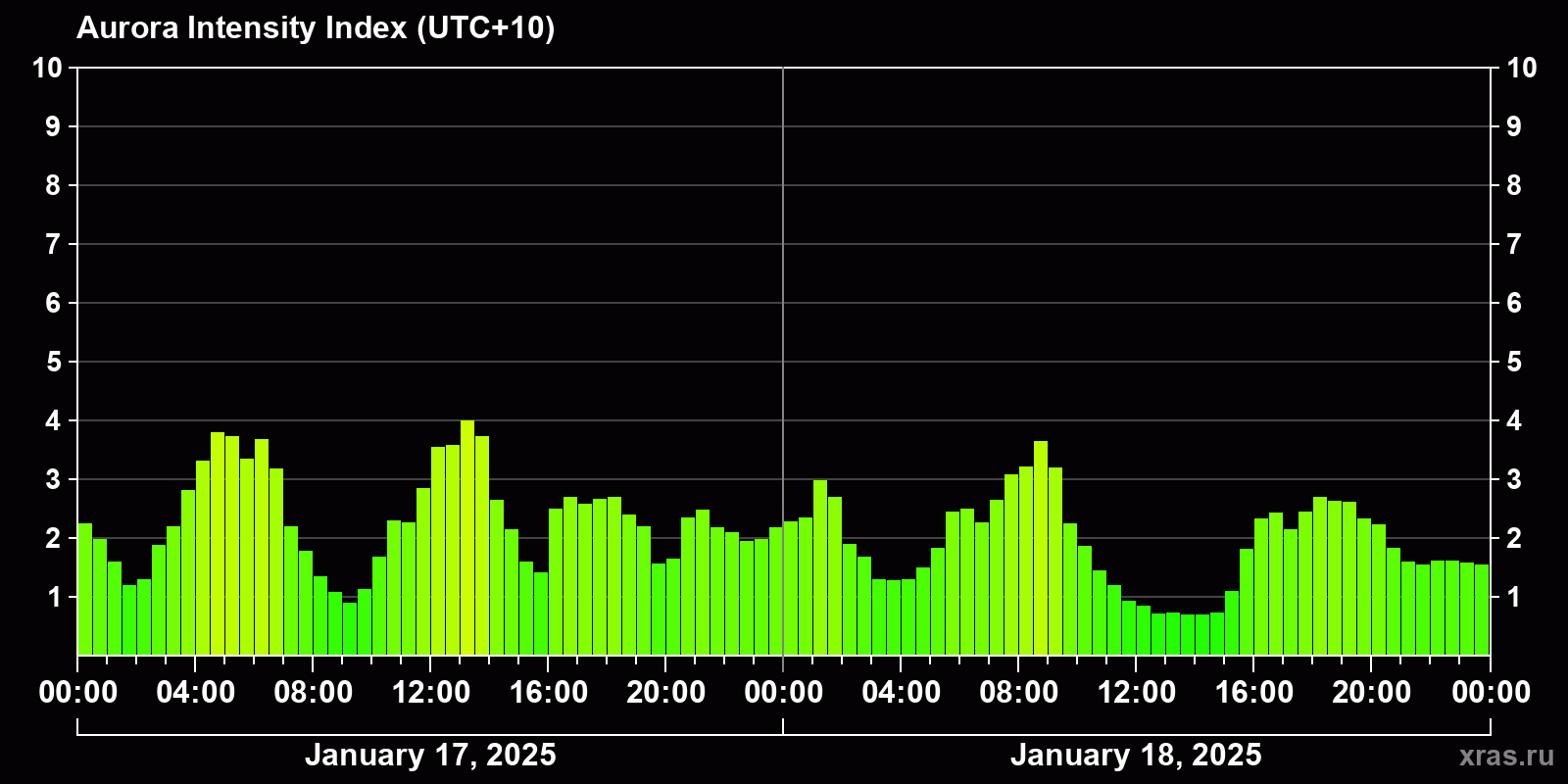 Changes in the auroral intensity index from 2025-01-17 to 2025-01-18 local time