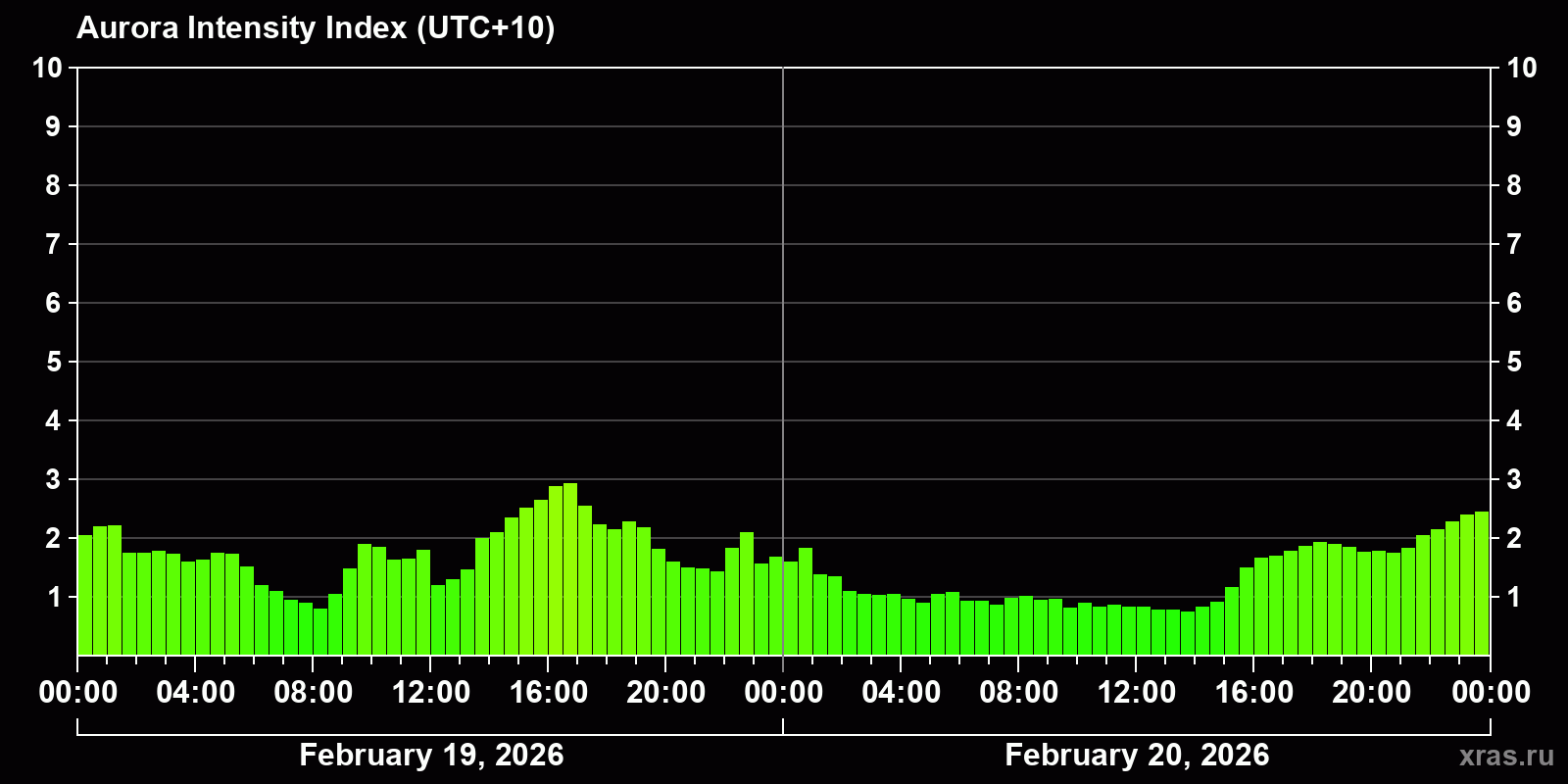 Changes in the auroral intensity index from 2026-02-19 to 2026-02-20 local time