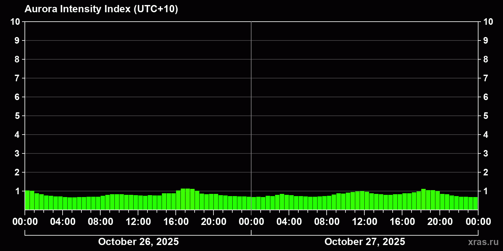 Changes in the auroral intensity index from 2025-10-26 to 2025-10-27 local time