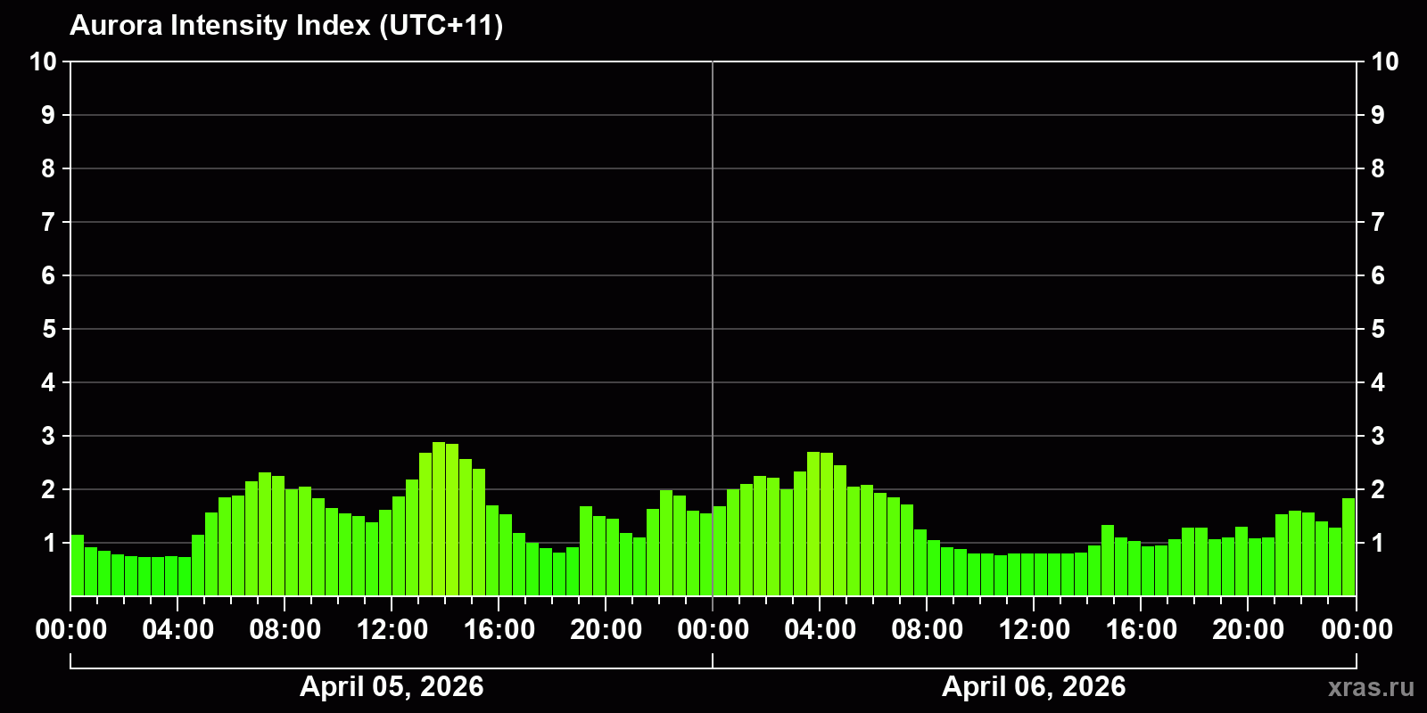 Changes in the auroral intensity index from 2026-04-05 to 2026-04-06 local time