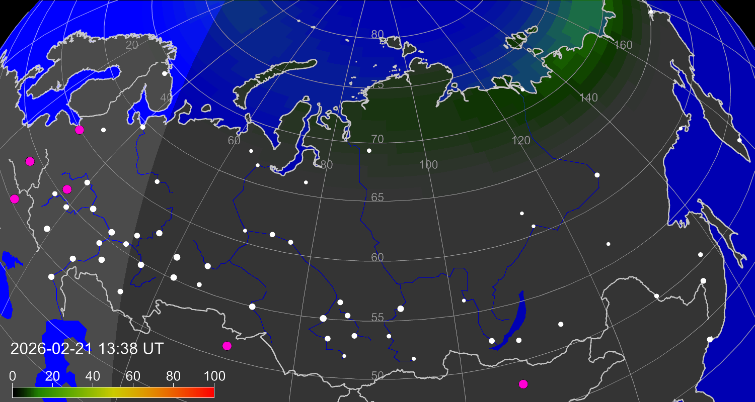 Зона полярных (северных) сияний над территорией Евразии