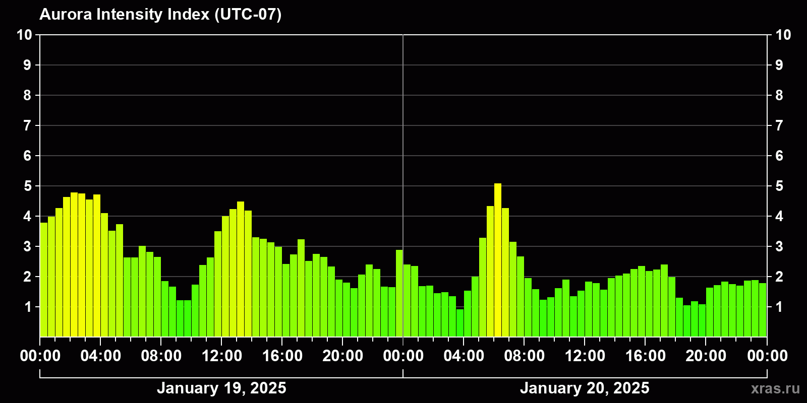 Changes in the auroral intensity index from 2025-01-19 to 2025-01-20 local time