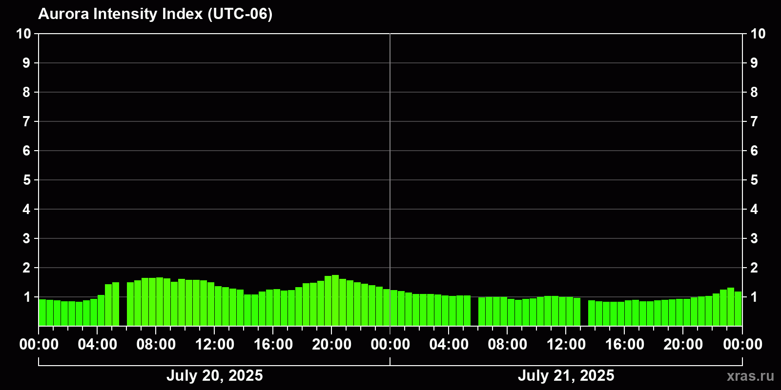 Changes in the auroral intensity index from 2025-07-20 to 2025-07-21 local time