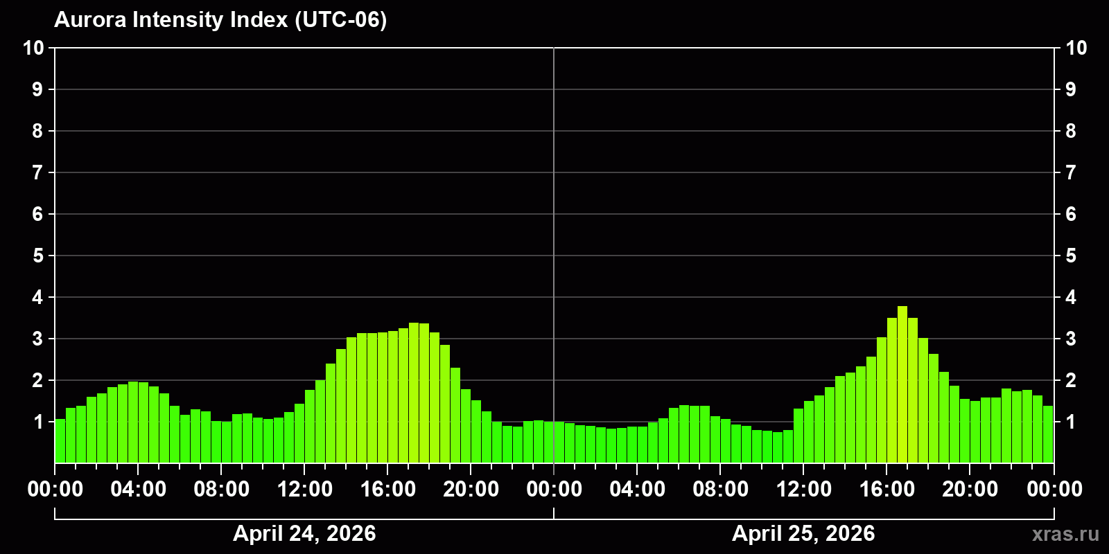Changes in the auroral intensity index from 2026-04-24 to 2026-04-25 local time