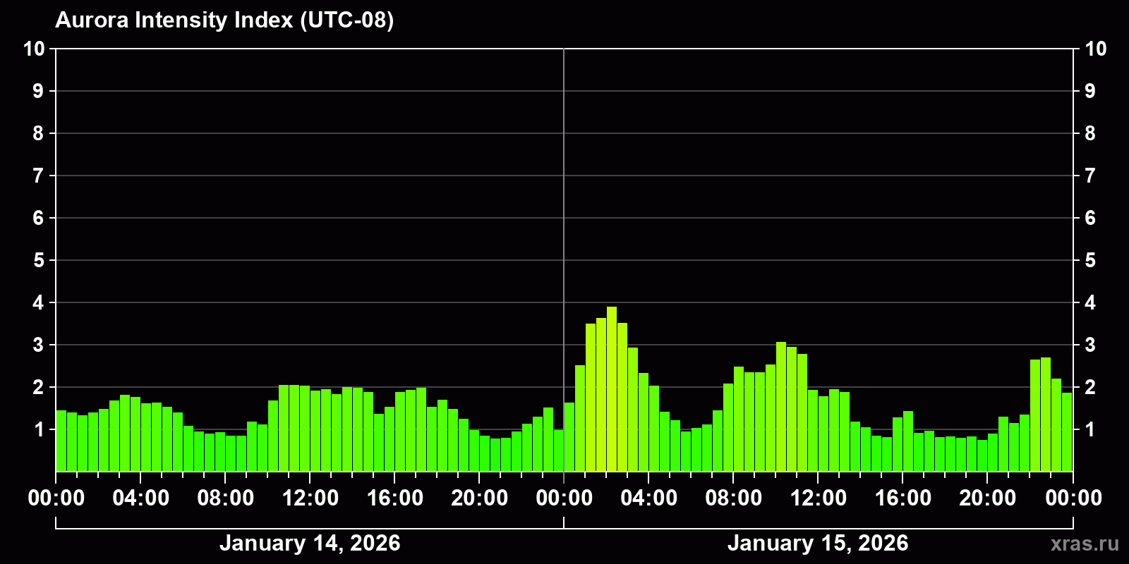 Changes in the auroral intensity index from 2026-01-14 to 2026-01-15 local time
