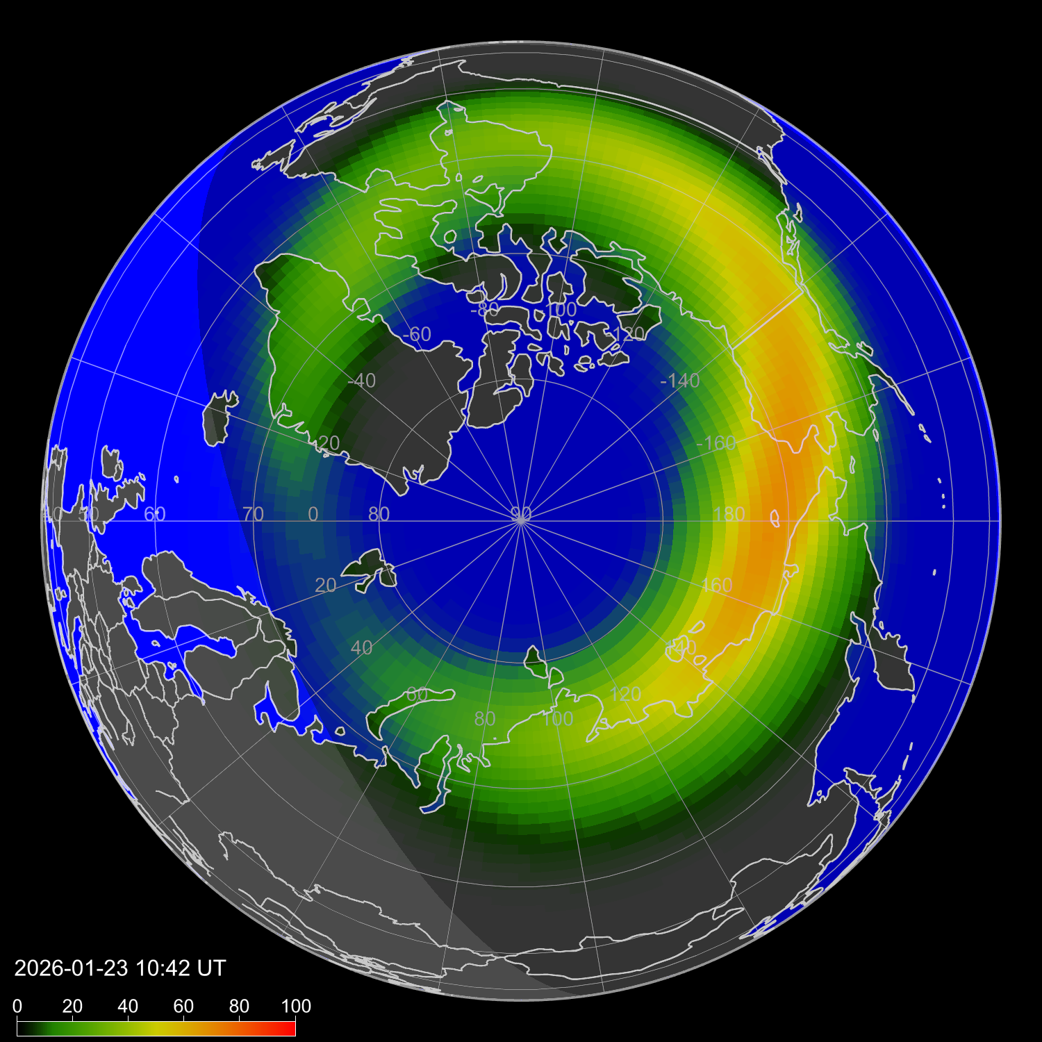 Зона полярных сияний в северном полушарии