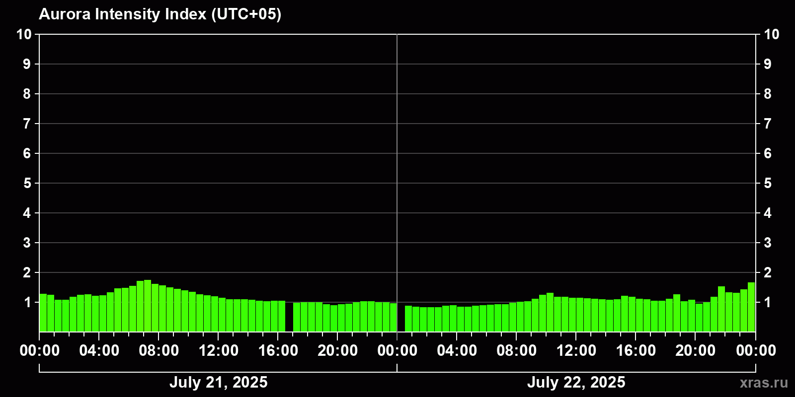 Changes in the auroral intensity index from 2025-07-21 to 2025-07-22 local time