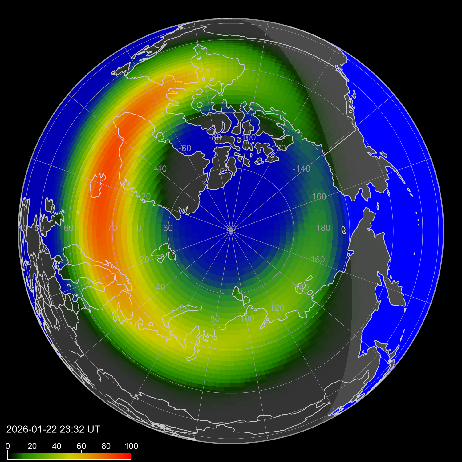 Зона полярных сияний в северном полушарии