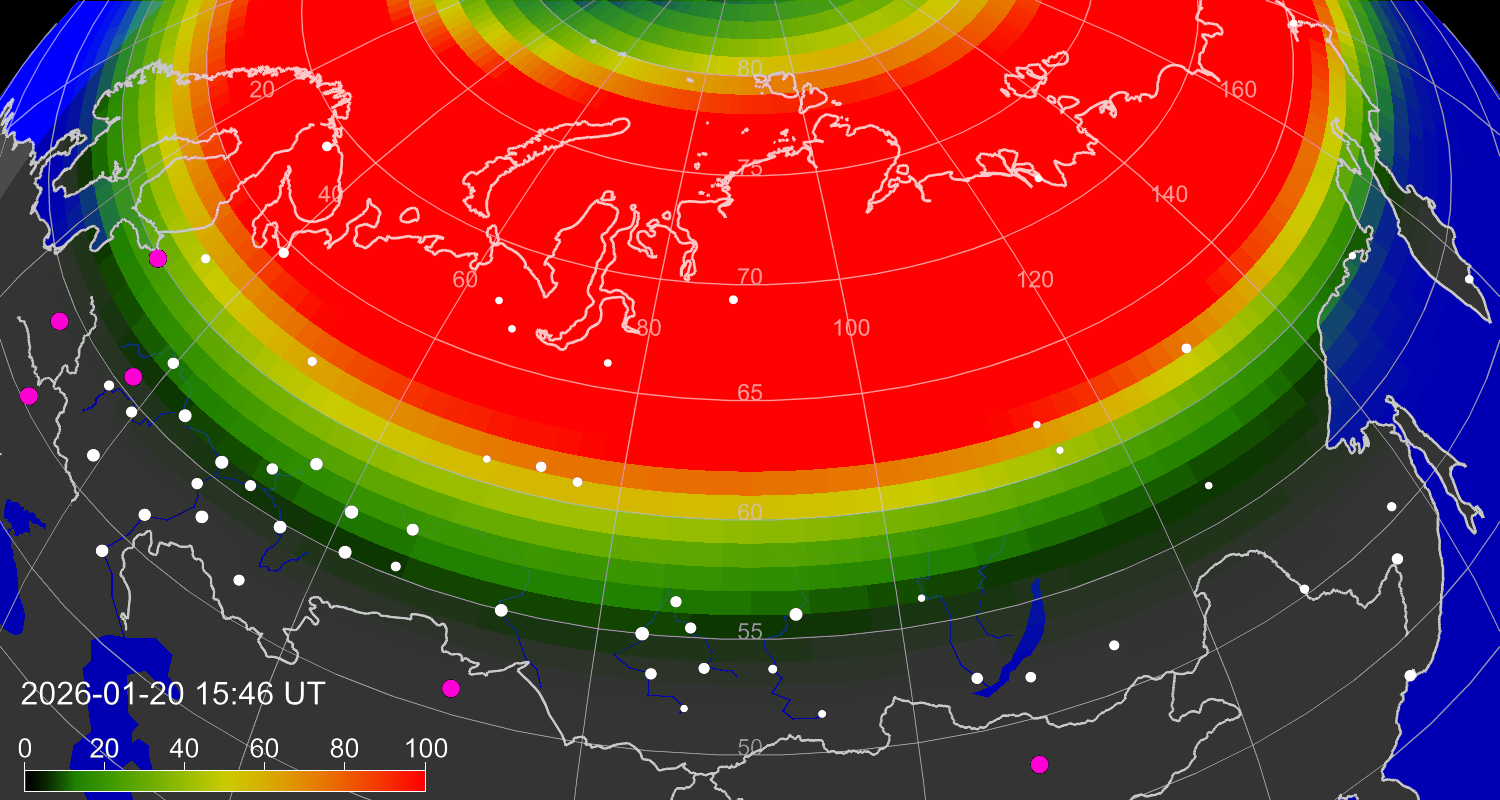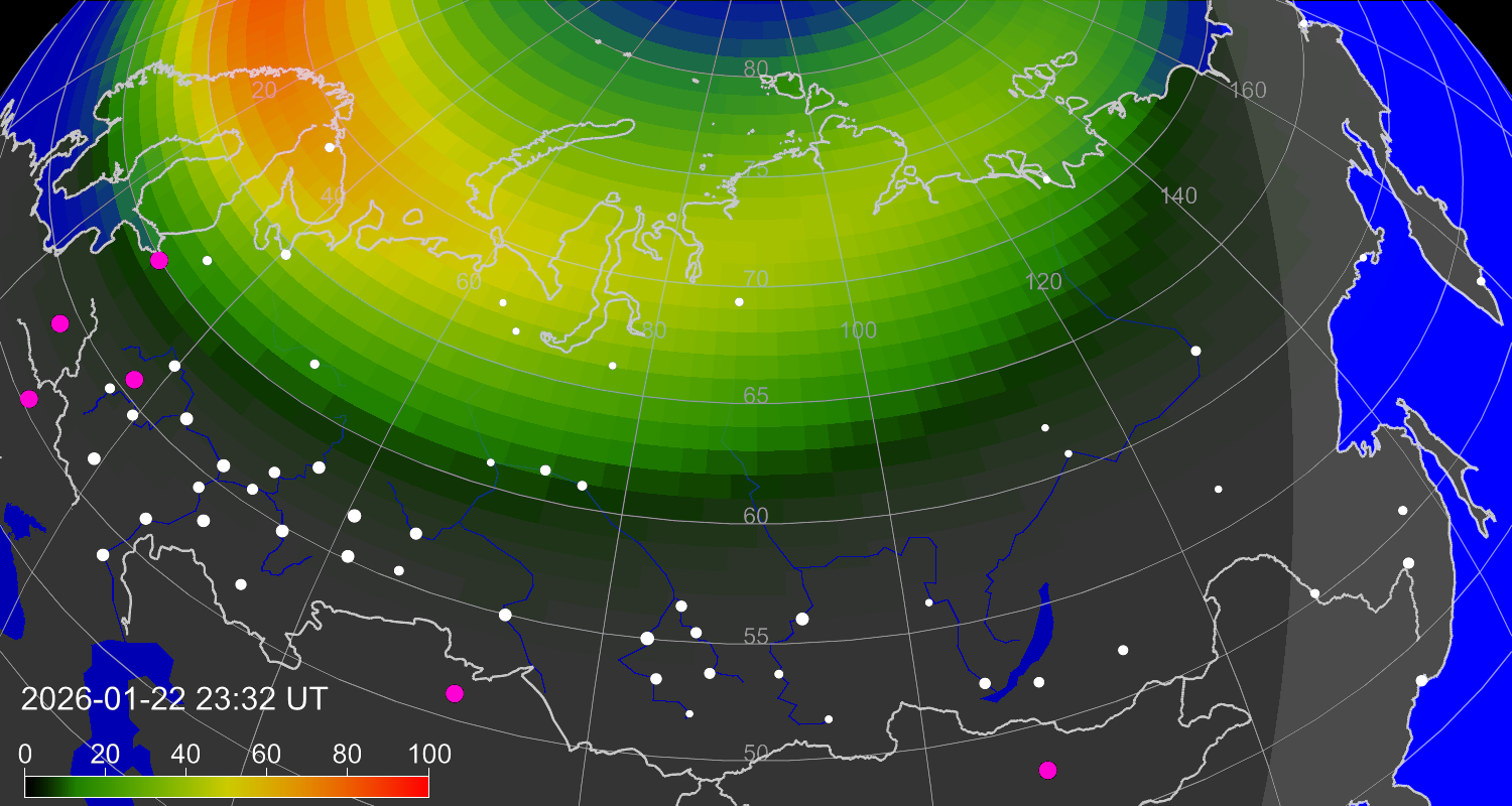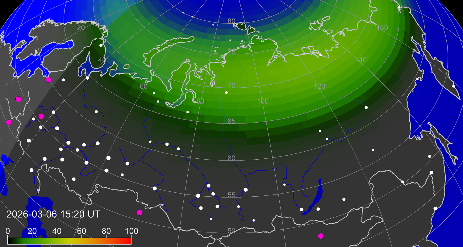 Вероятность полярных сияний в городах Российской Федерации