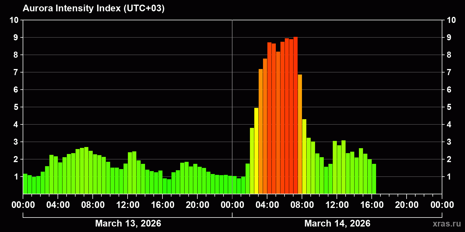 Auroras (northern lights) in Cherkessk — Mar 14, 2026