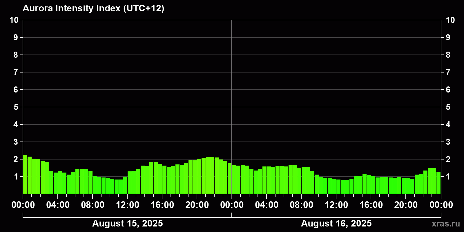 Changes in the auroral intensity index from 2025-08-16 to 2025-08-17 local time