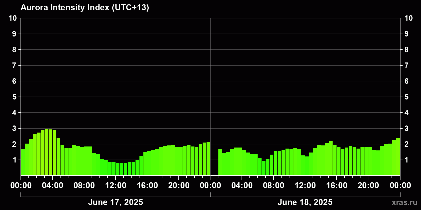 Changes in the auroral intensity index from 2025-06-17 to 2025-06-18 local time