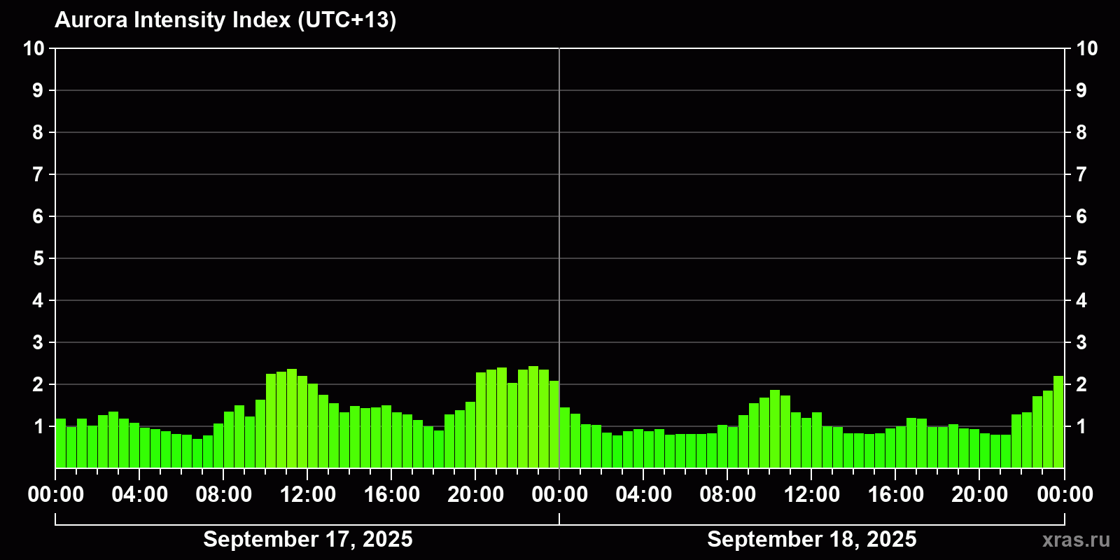 Changes in the auroral intensity index from 2025-09-17 to 2025-09-18 local time