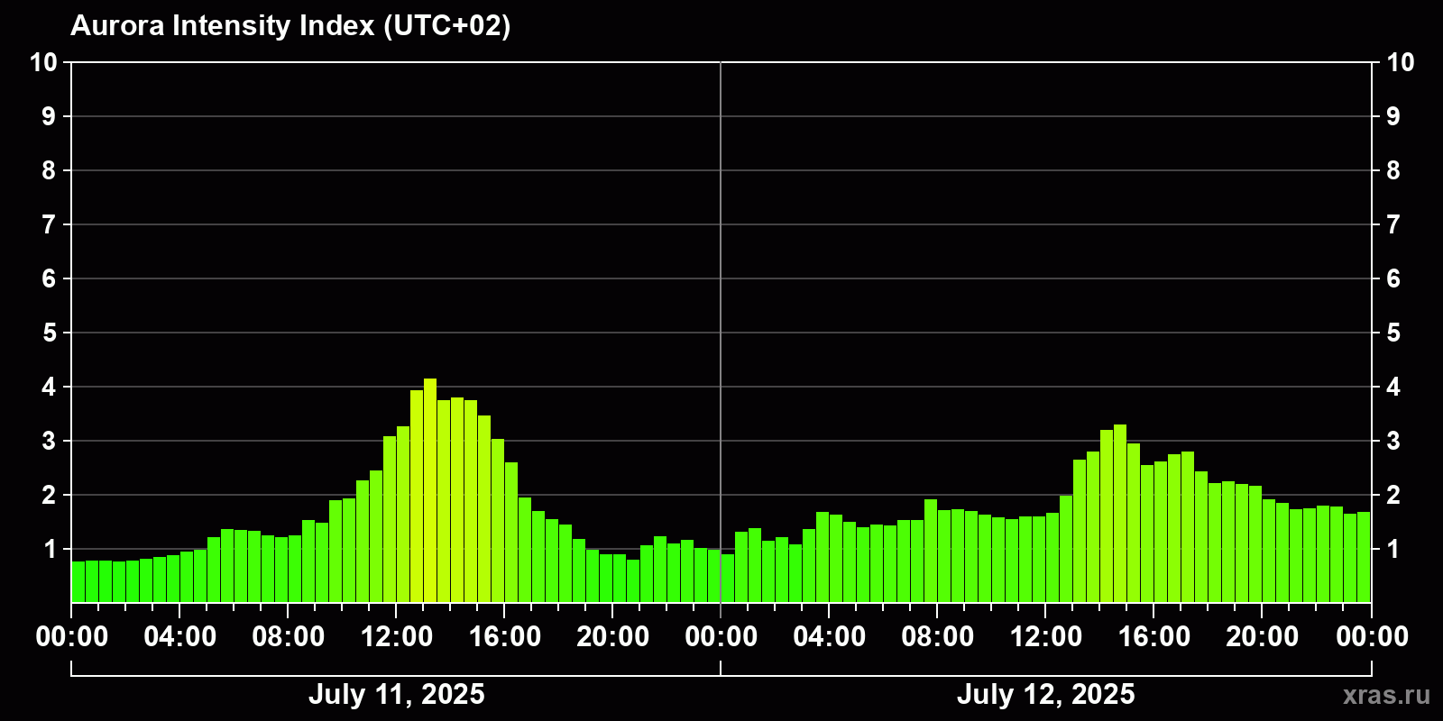 Changes in the auroral intensity index from 2025-07-11 to 2025-07-12 local time