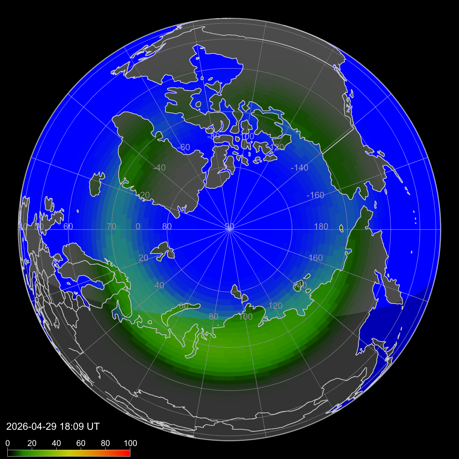 Probability of northern lights in Cordova