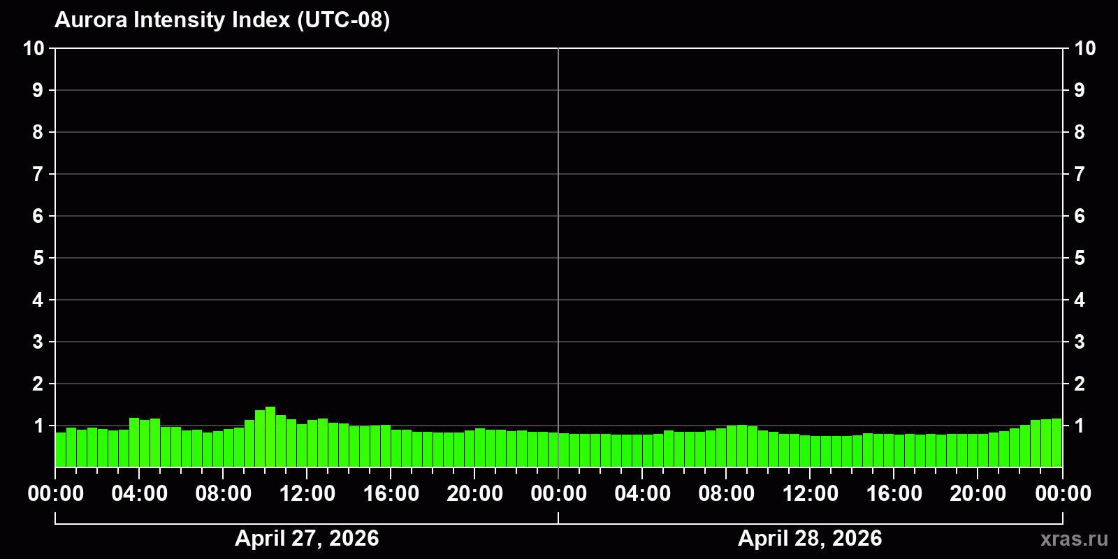 Changes in the auroral intensity index from 2026-04-27 to 2026-04-28 local time