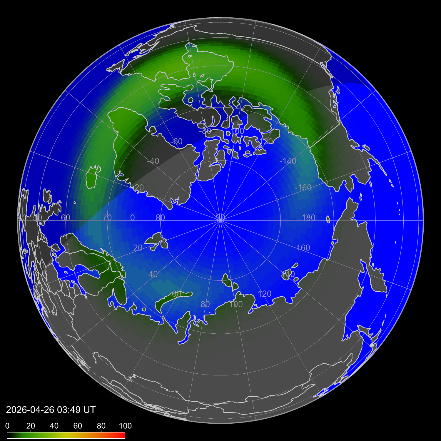 Probability of northern lights in Dallas