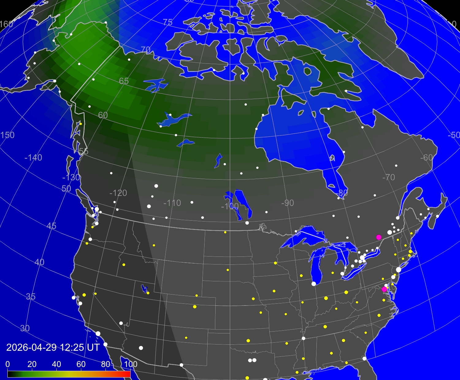 Northern lights (auroras) over North America