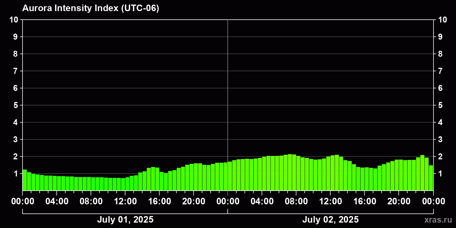 Changes in the auroral intensity index from 2025-07-01 to 2025-07-02 local time