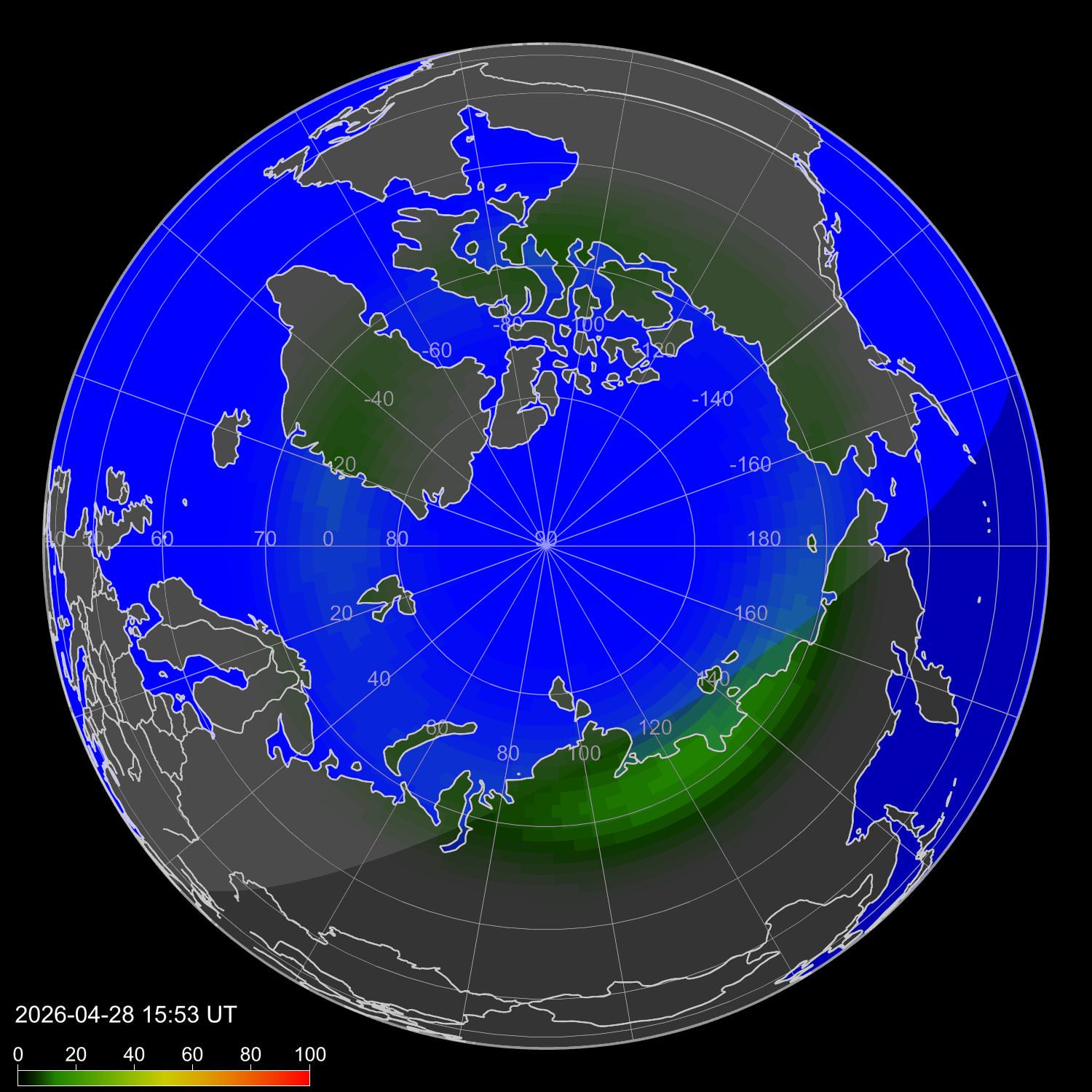 Probability of northern lights in Delhi