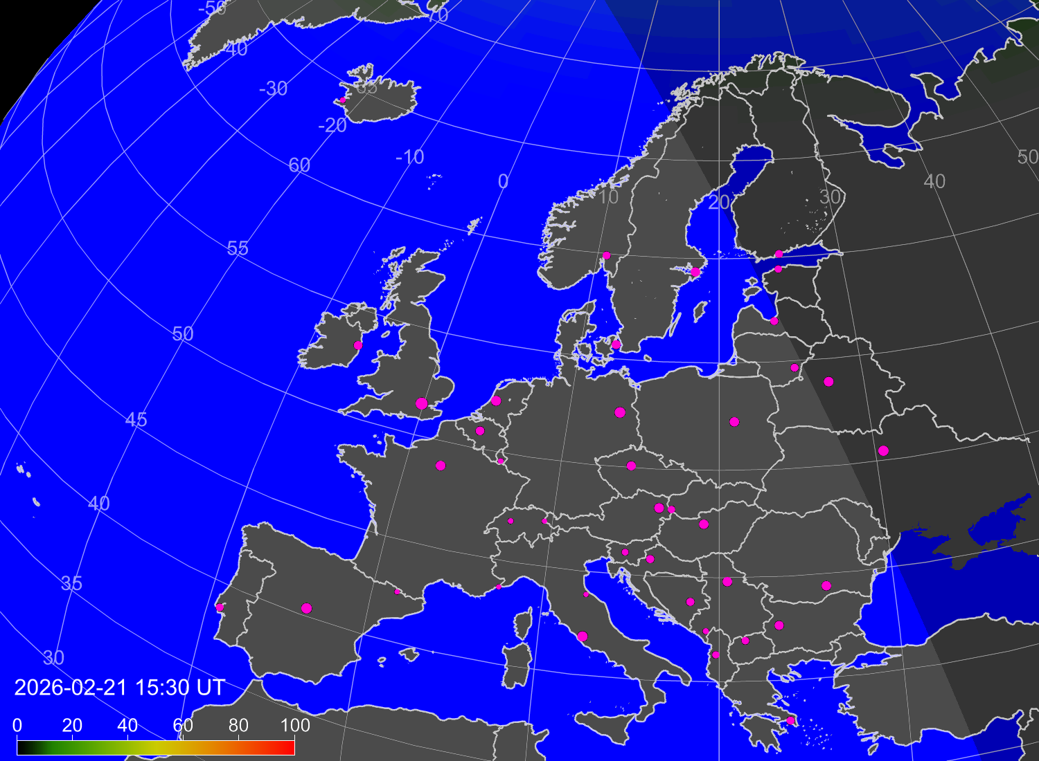 Вероятность полярных сияний в городах Европы