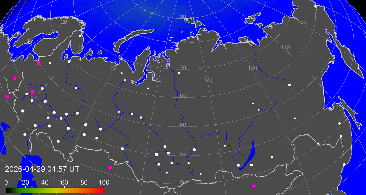 Northern lights (auroras) over the territory of Eurasia