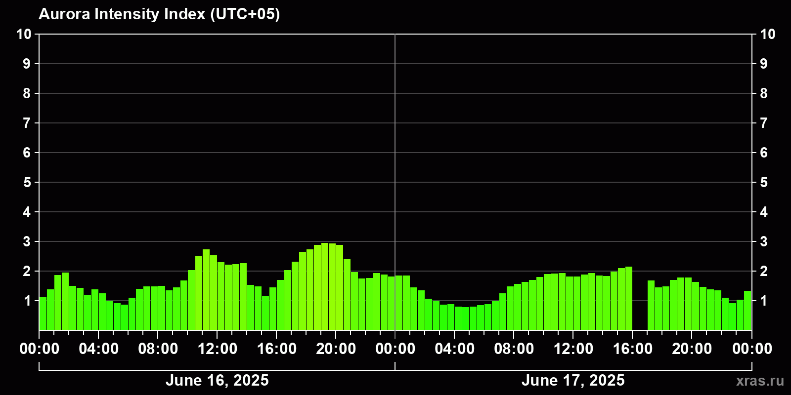 Auroras (northern lights) in Dushanbe — Jun 17, 2025