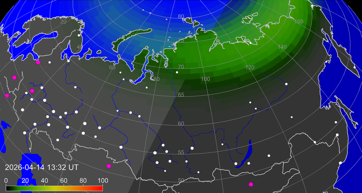 Зона полярных (северных) сияний над территорией Евразии