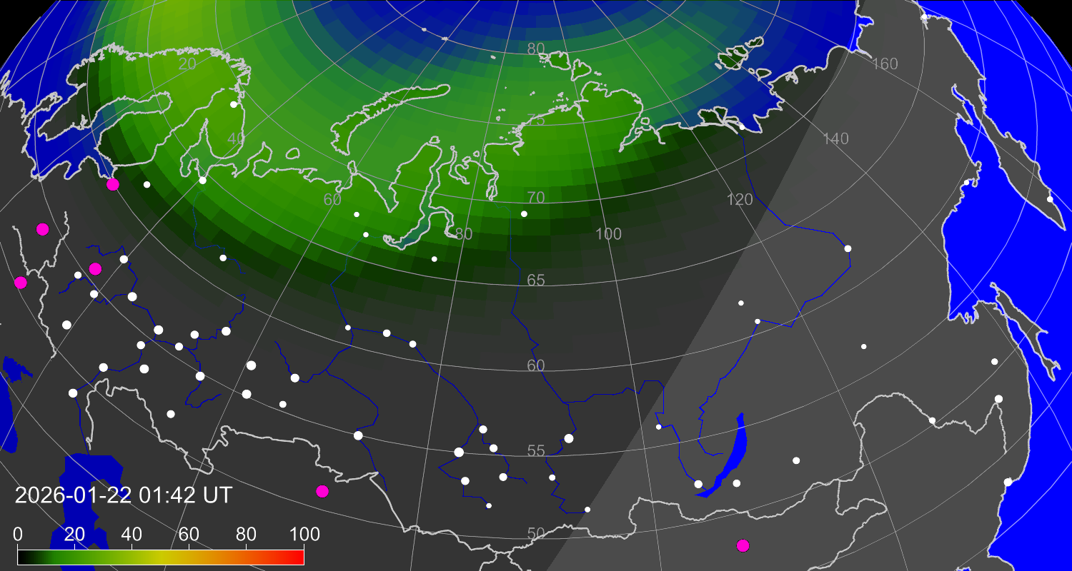 Зона полярных (северных) сияний над территорией Евразии