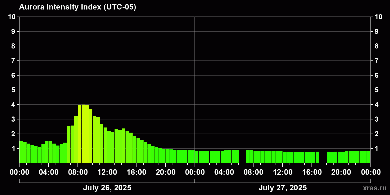 Changes in the auroral intensity index from 2025-07-26 to 2025-07-27 local time