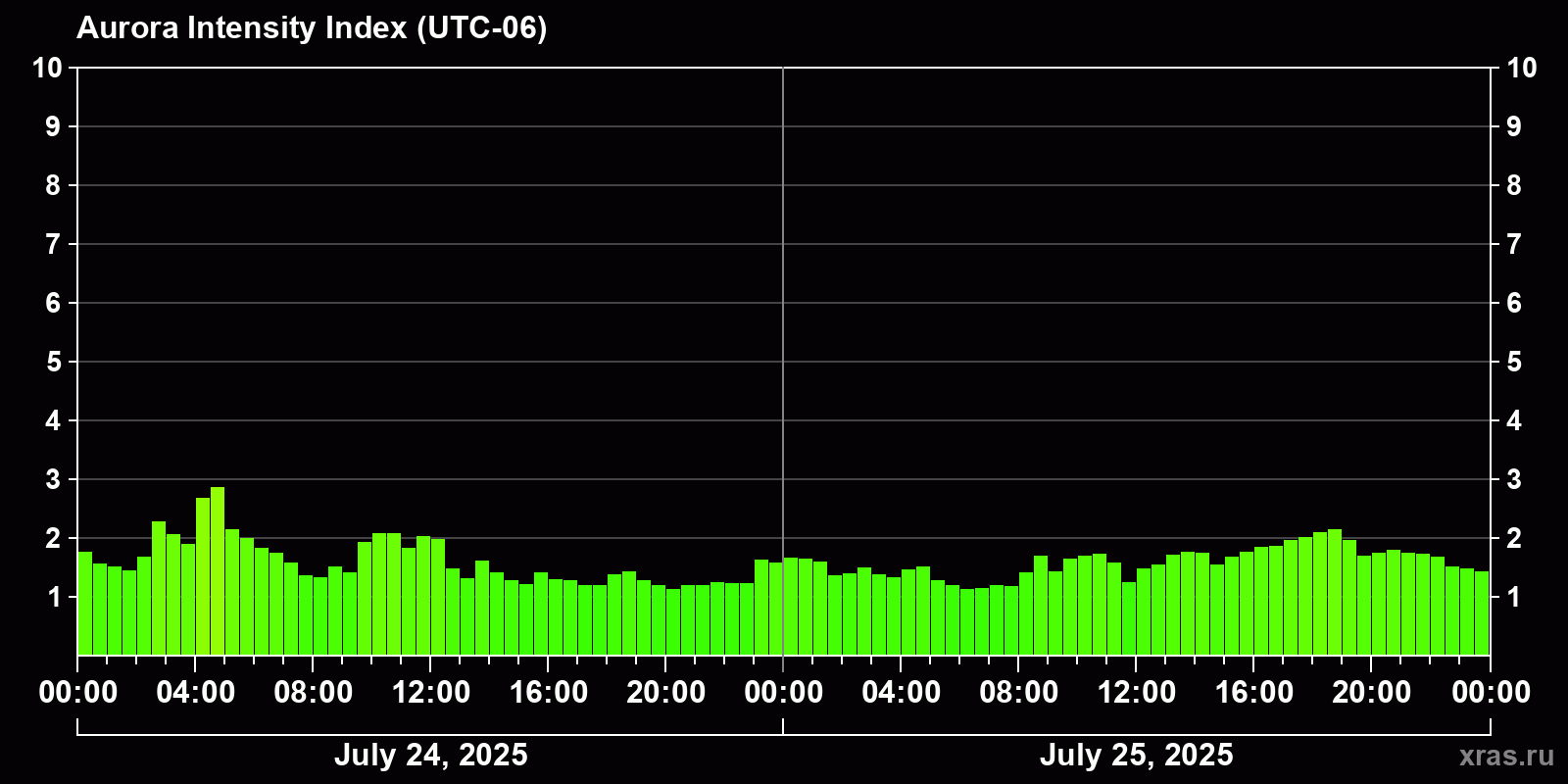 Changes in the auroral intensity index from 2025-07-24 to 2025-07-25 local time