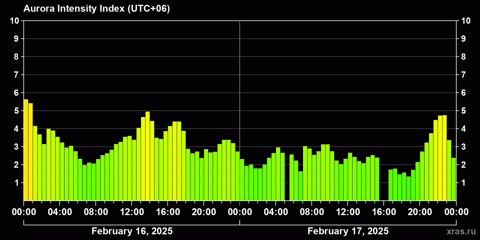 Auroras (northern lights) in Gorno-Altaysk — Feb 17, 2025