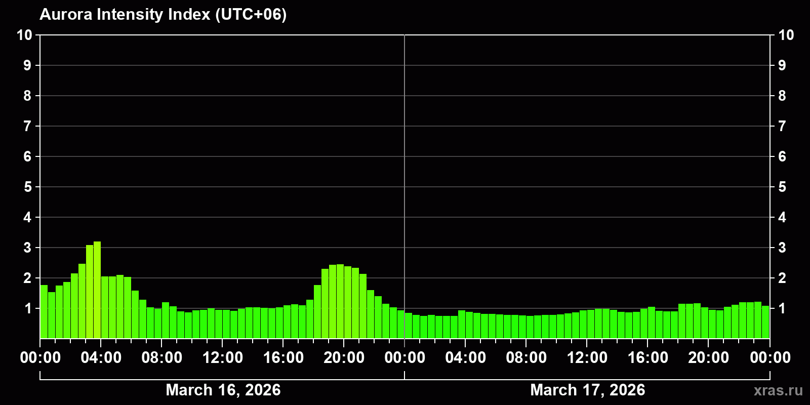 Auroras (northern lights) in Gorno-Altaysk — Mar 17, 2026