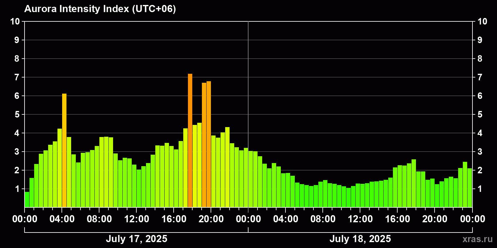 Changes in the auroral intensity index from 2025-07-17 to 2025-07-18 local time