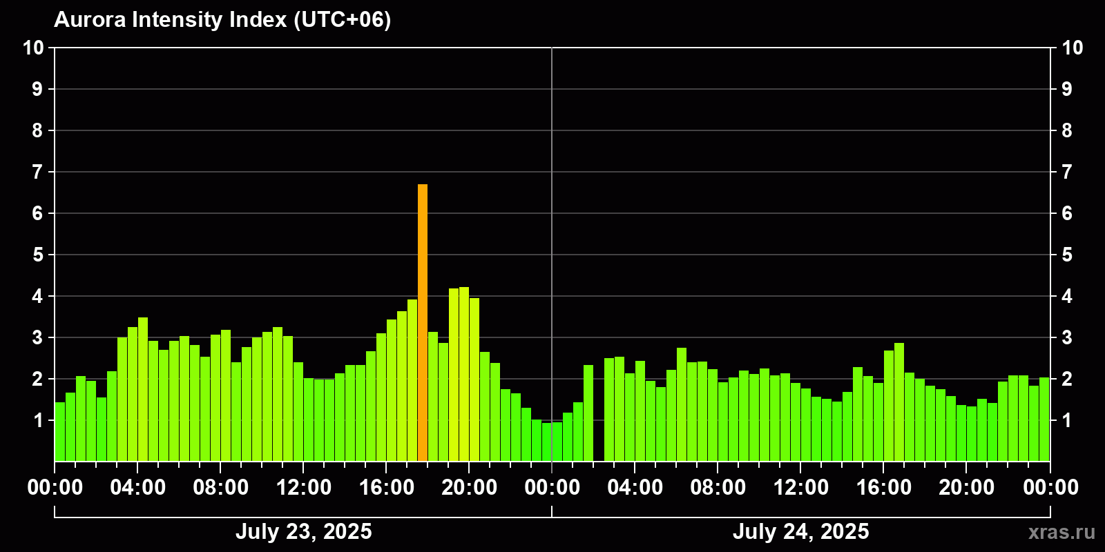 Auroras (northern lights) in Gorno-Altaysk — Jul 24, 2025