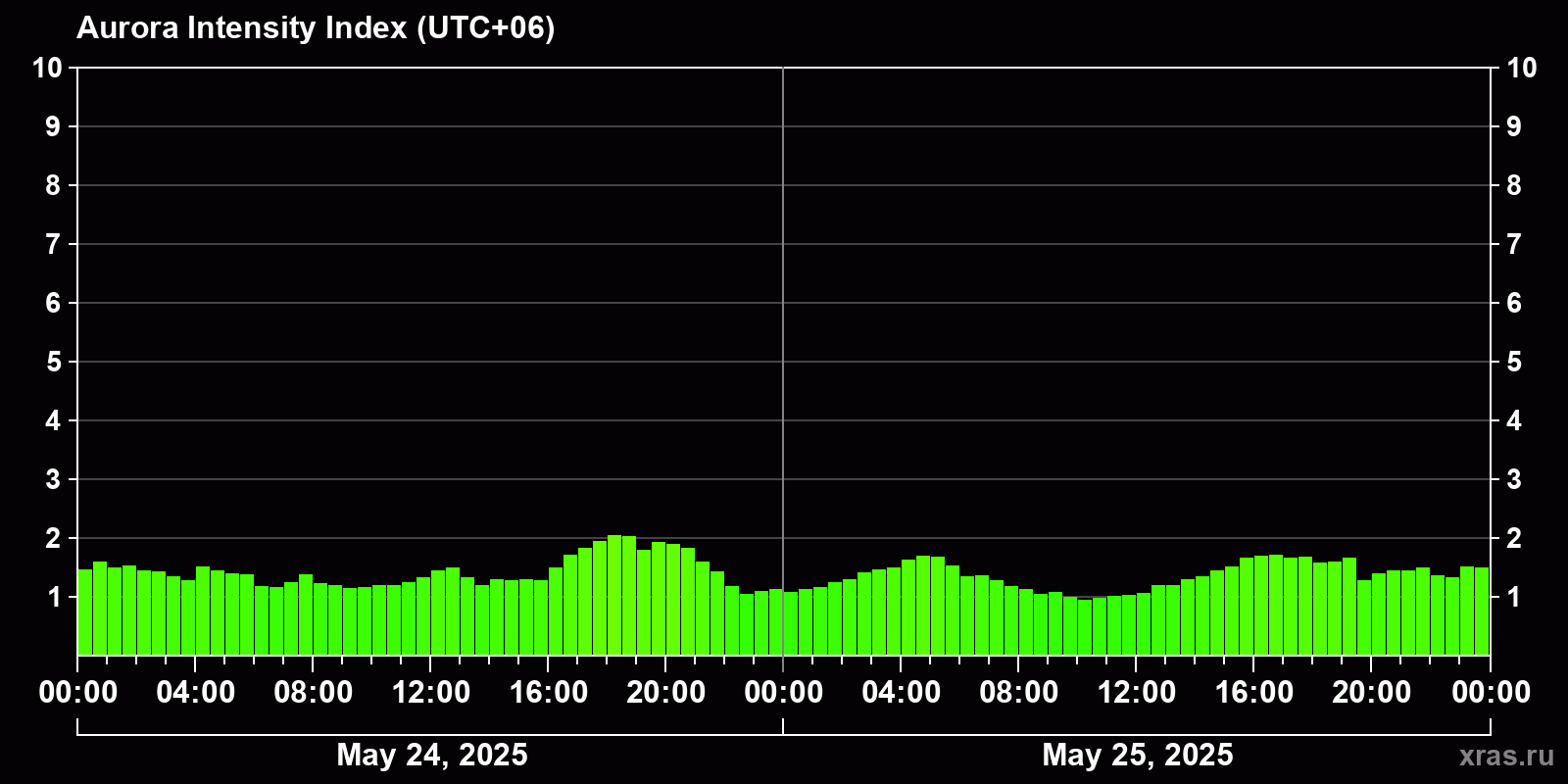 Changes in the auroral intensity index from 2025-05-24 to 2025-05-25 local time