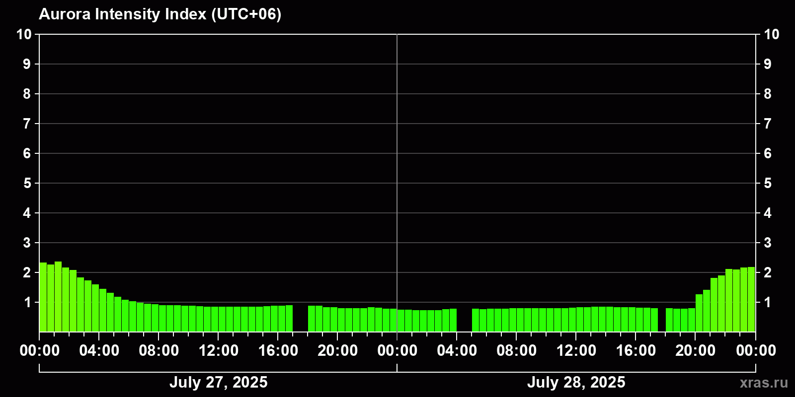 Auroras (northern lights) in Gorno-Altaysk — Jul 28, 2025