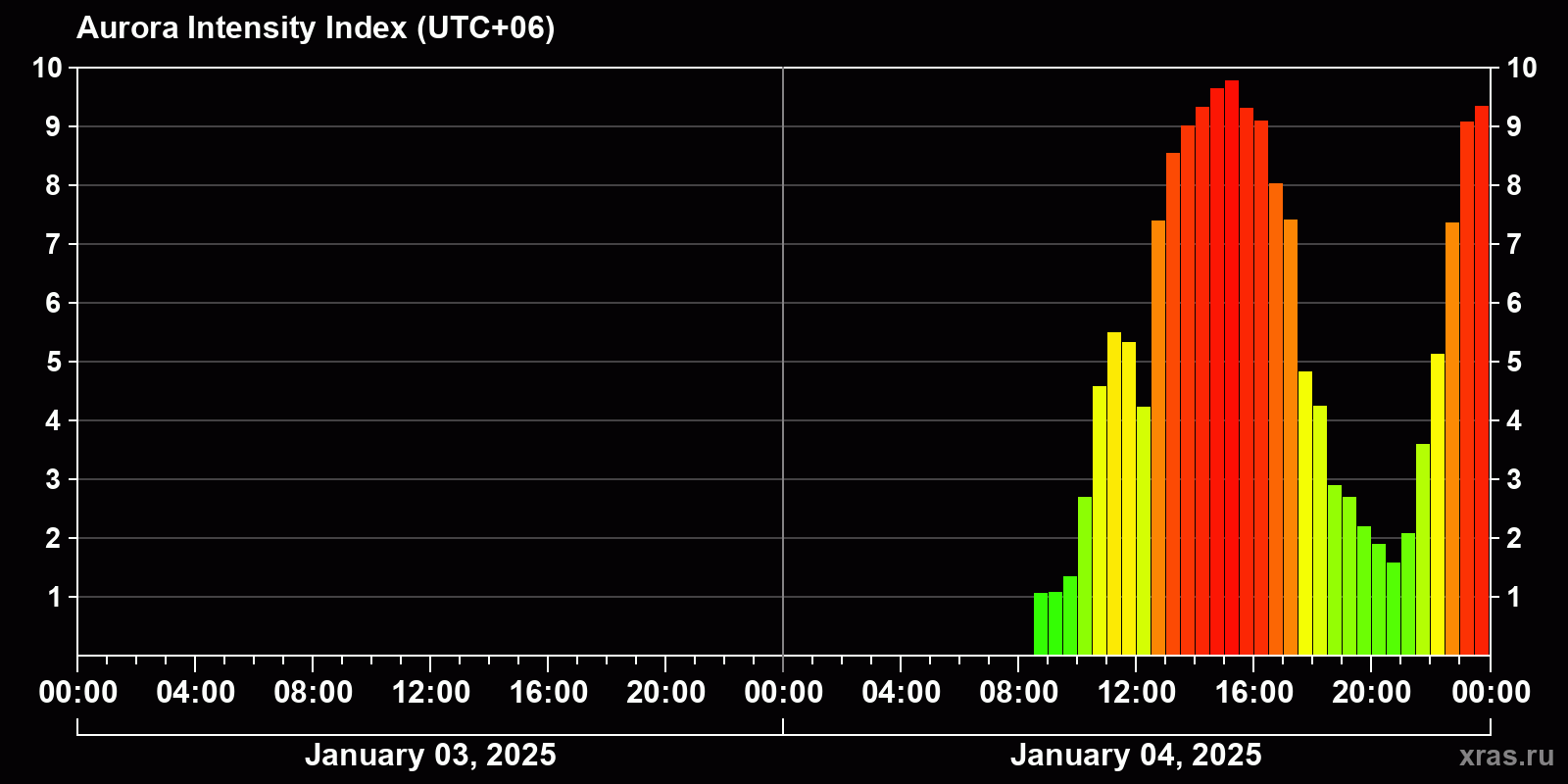 Auroras (northern lights) in Gorno-Altaysk — Jan 04, 2025