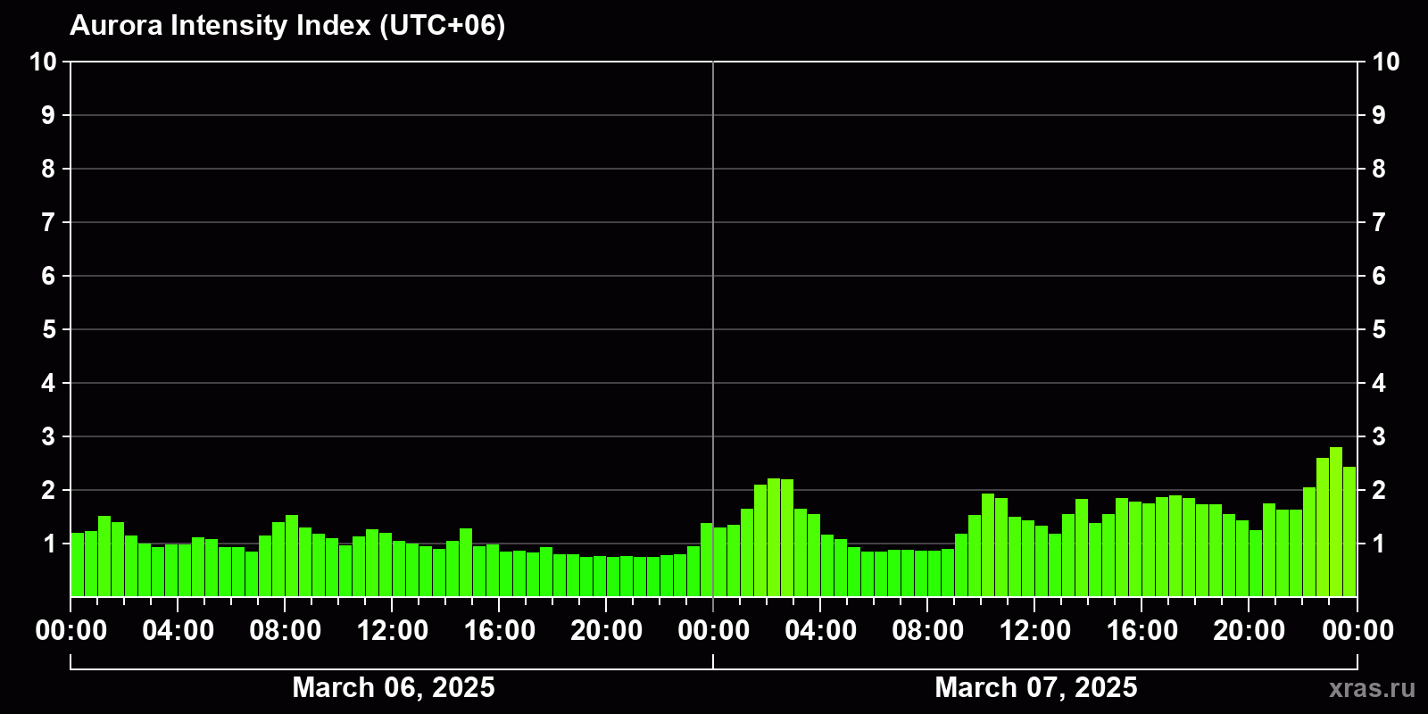 Auroras (northern lights) in Gorno-Altaysk — Mar 07, 2025