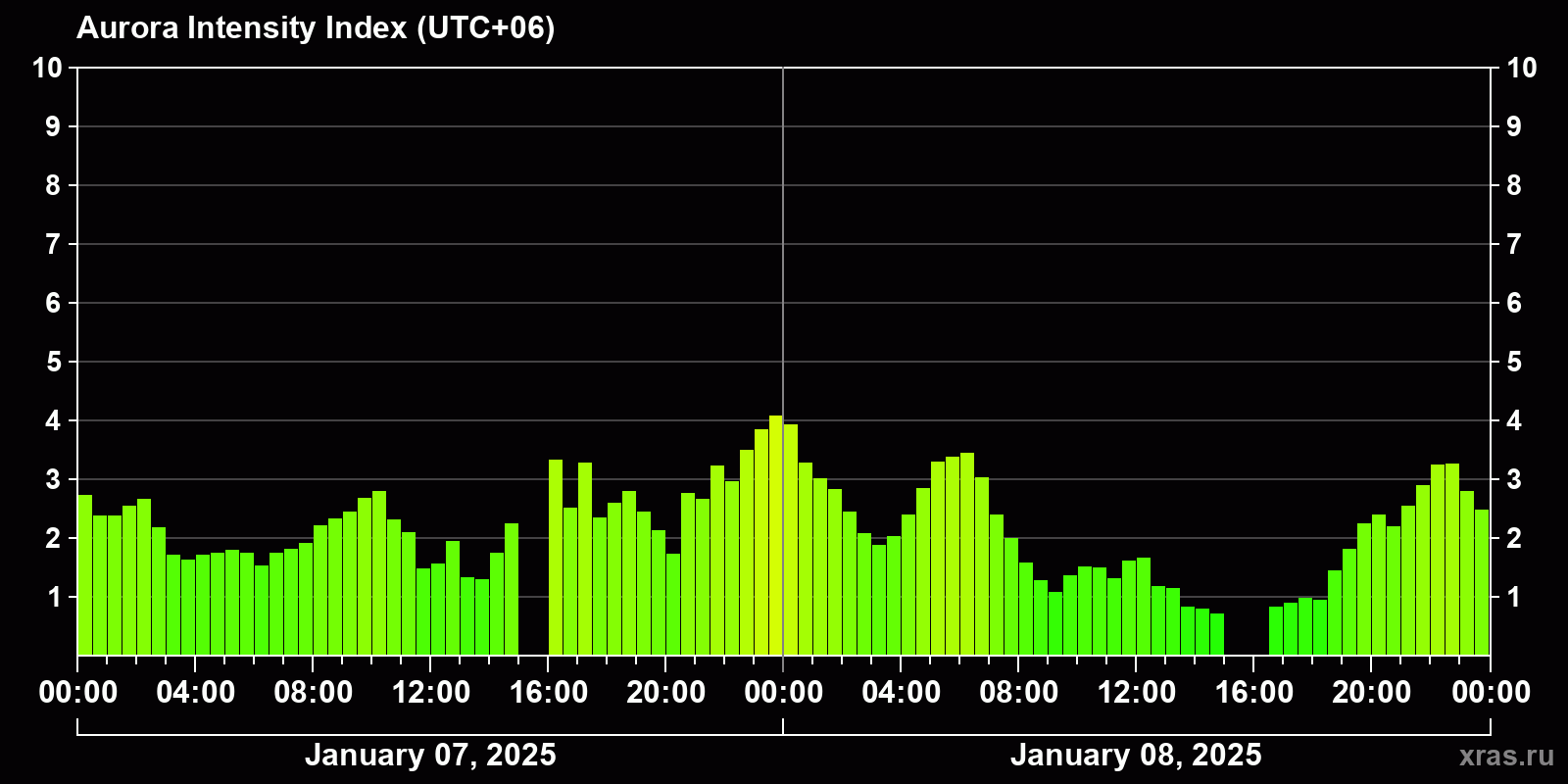 Auroras (northern lights) in Gorno-Altaysk — Jan 08, 2025