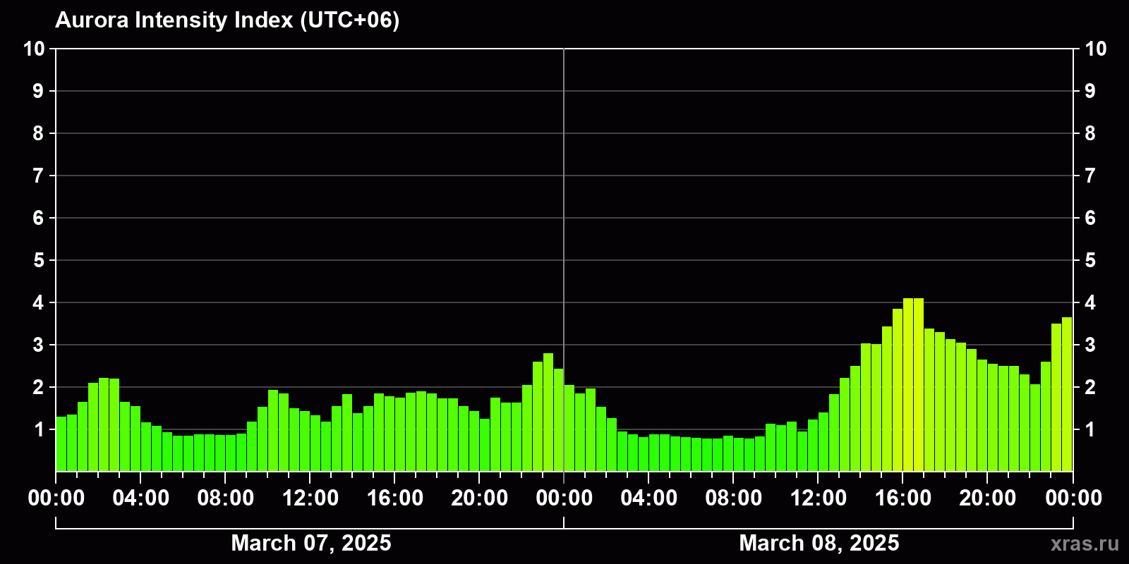 Auroras (northern lights) in Gorno-Altaysk — Mar 08, 2025