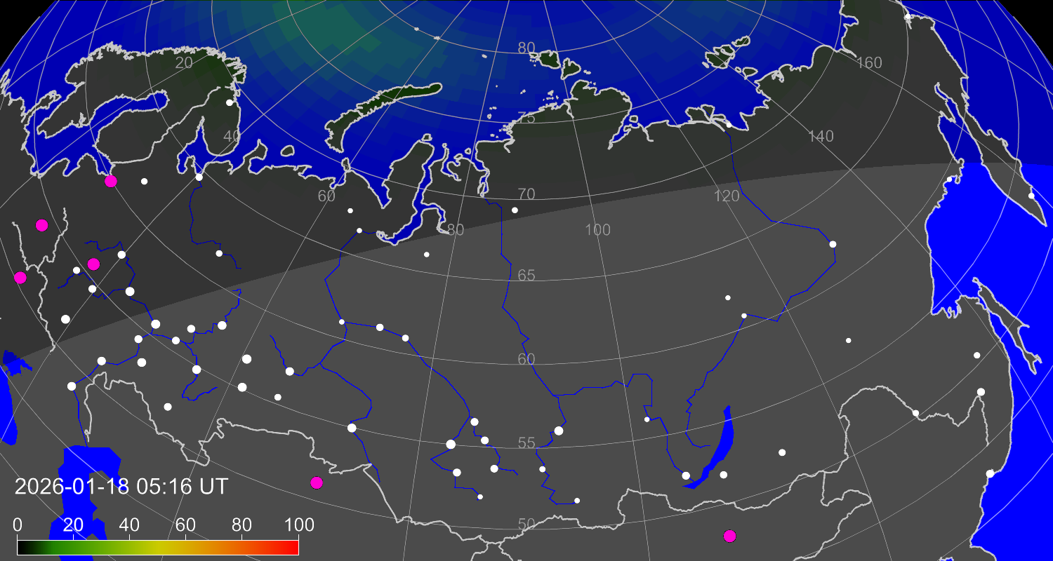 Вероятность полярных сияний в городах Российской Федерации