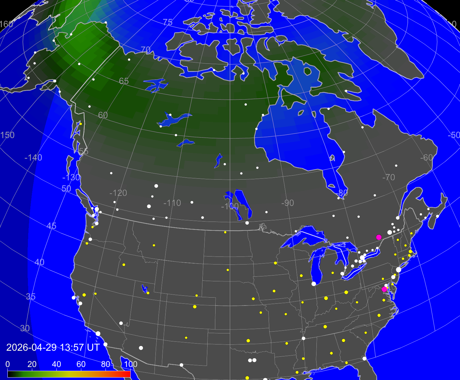 Northern lights (auroras) over North America