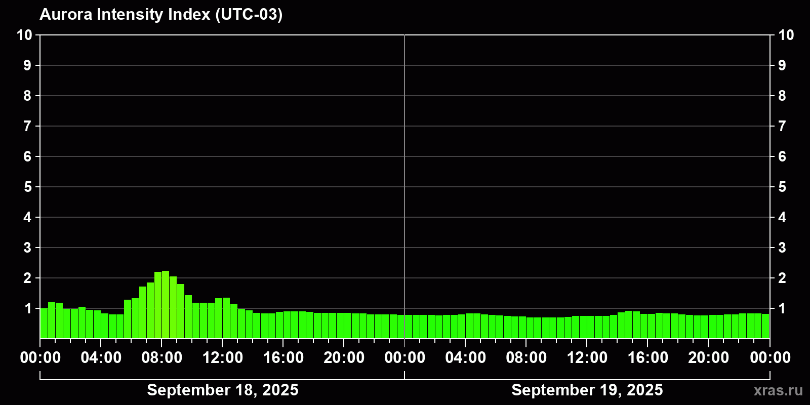 Changes in the auroral intensity index from 2025-09-18 to 2025-09-19 local time