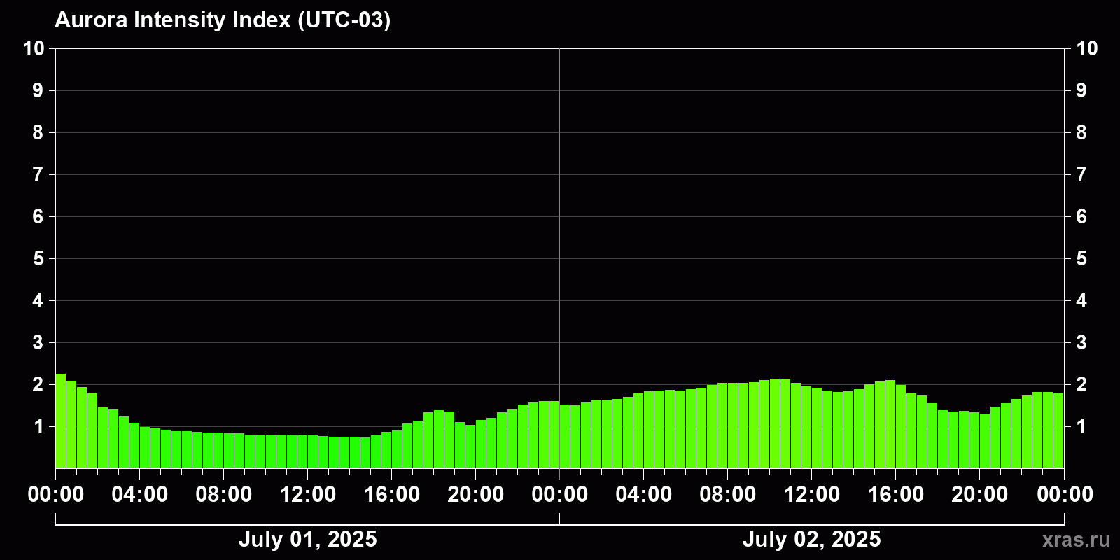 Changes in the auroral intensity index from 2025-07-01 to 2025-07-02 local time
