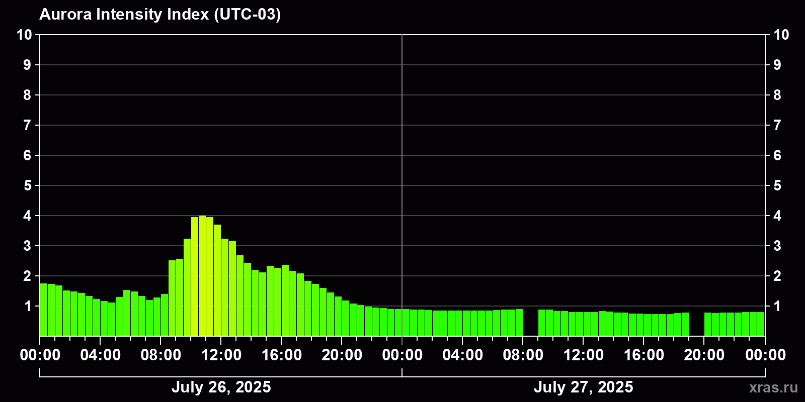 Changes in the auroral intensity index from 2025-07-26 to 2025-07-27 local time