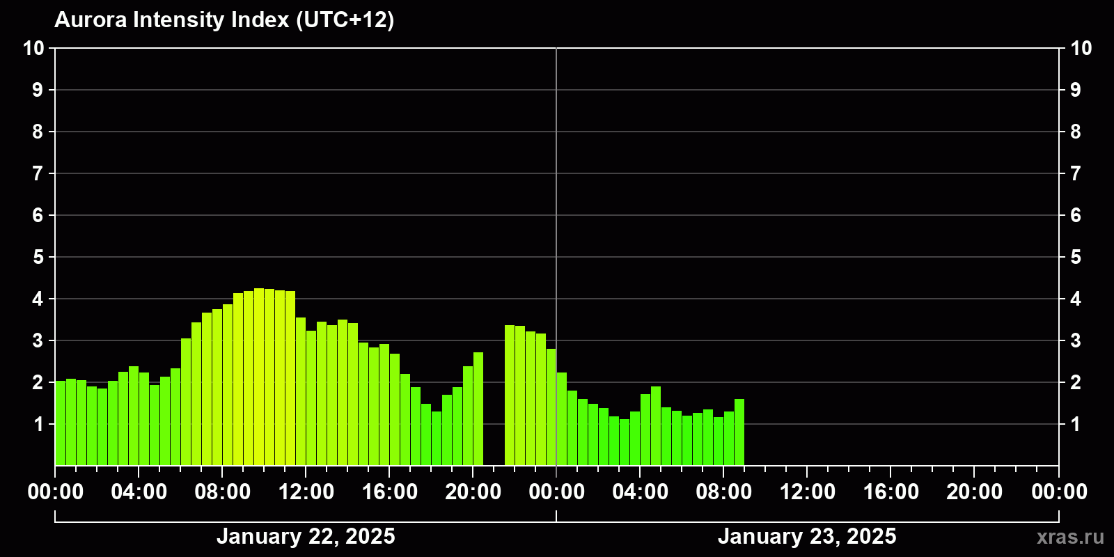 Changes in the auroral intensity index from 2025-01-22 to 2025-01-23 local time